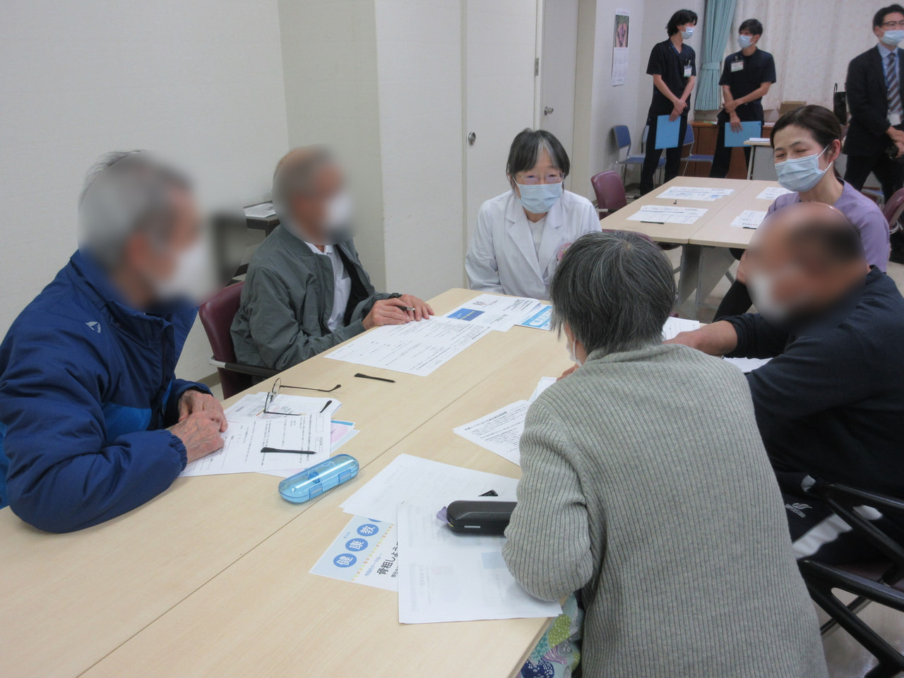 お話の後は、当院で患者さんに書いていただいている事前意思確認書を用いて、「病名や余命の告知について」や「医療処置について希望すること」などの項目を職員も交えて自分の意思を話し合ってみました。